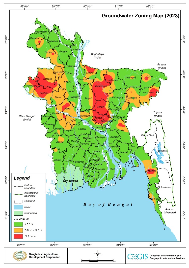 গ্রাউন্ডওয়াটার জোনিং ম্যাপ ২০২৩